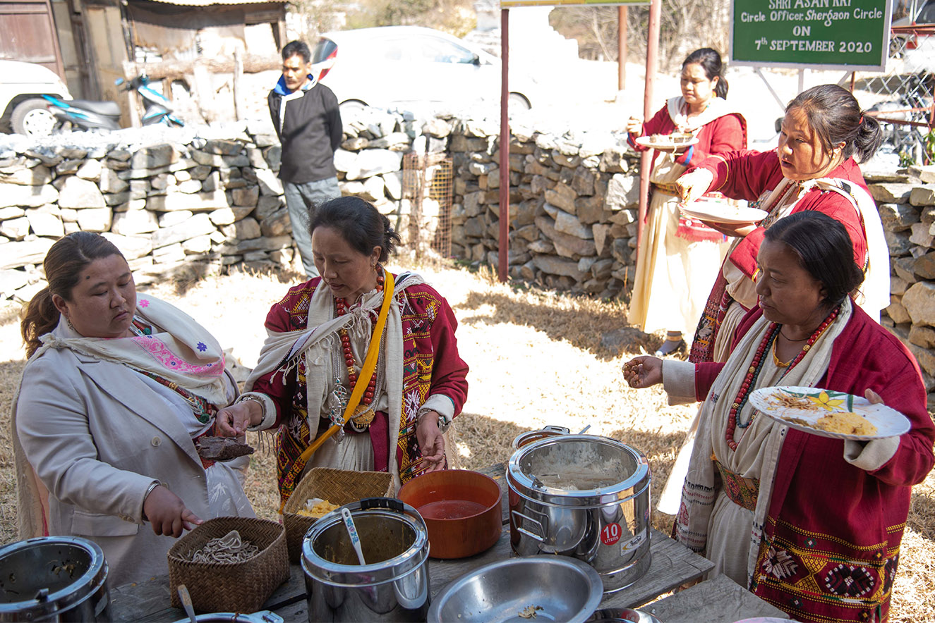 The beautiful weaving tradition of the Sherdukpens has also diminished over the years. The women of a self-help group still wear their traditional clothes. Sherdukpen women are skilled in making their own attire, as well as attractive carry bags, mats, carpets and other utility items.